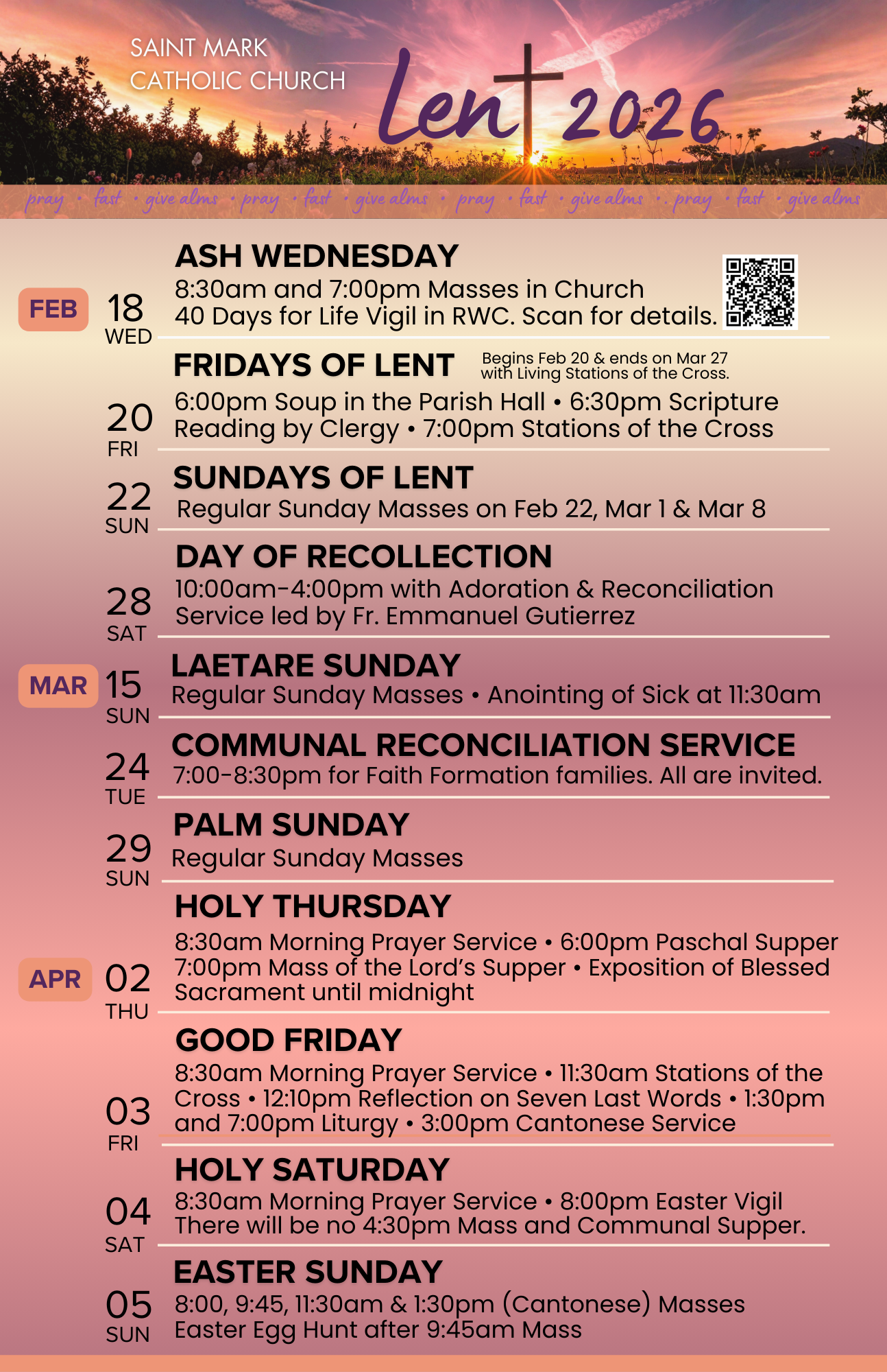 Saint Mark invites you to participate in this season’s Lenten activities.